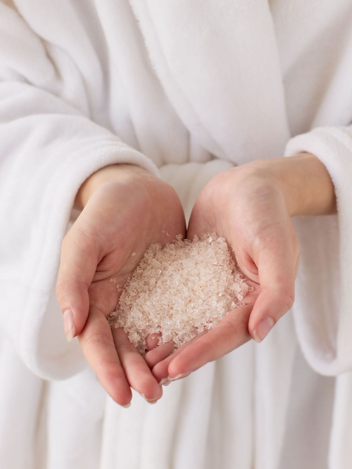 A restorative blend of Epsom salt, mineral salt flakes and Himalayan pink salt helps ease muscular tension while delivering naturally occurring trace minerals that support healthy, balanced skin.