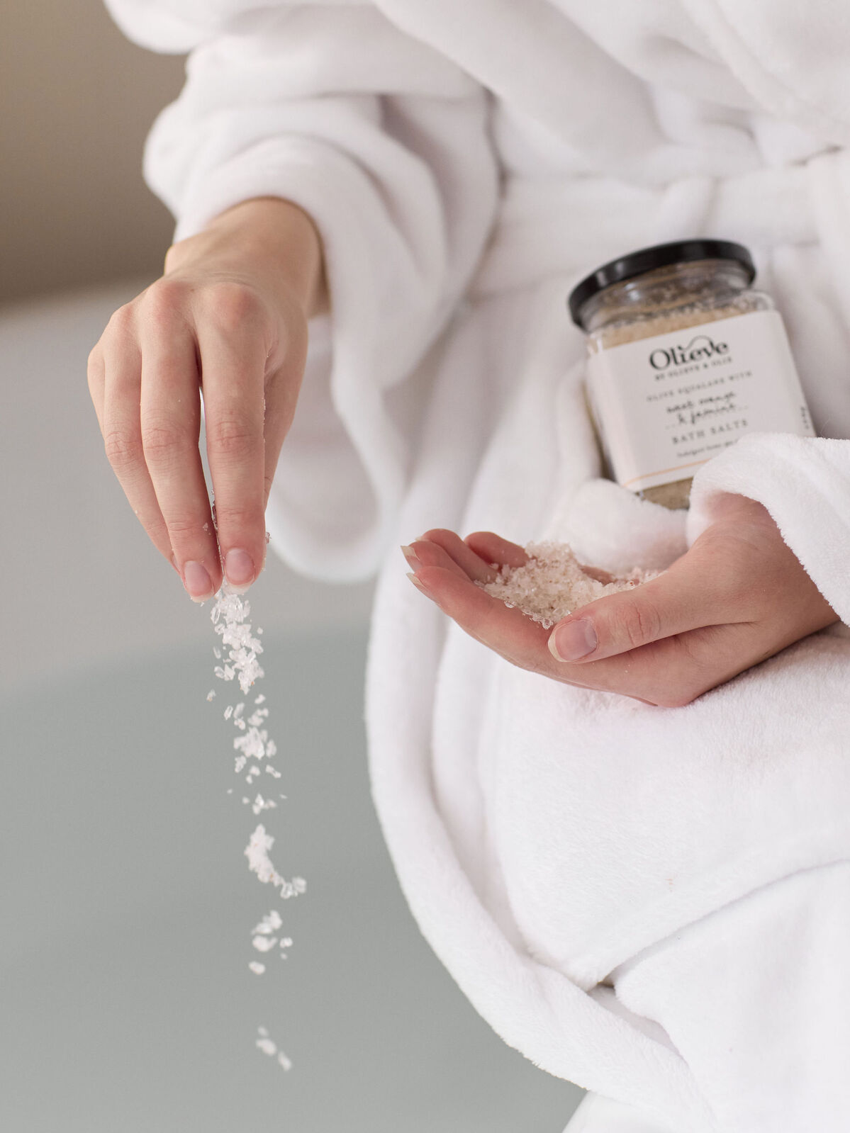 As the salts dissolve, olive squalene and nourishing jojoba seed oil transform the bath into a hydrating treatment, helping to soften, condition and replenish dry skin so it feels smooth, supple and beautifully cared for.